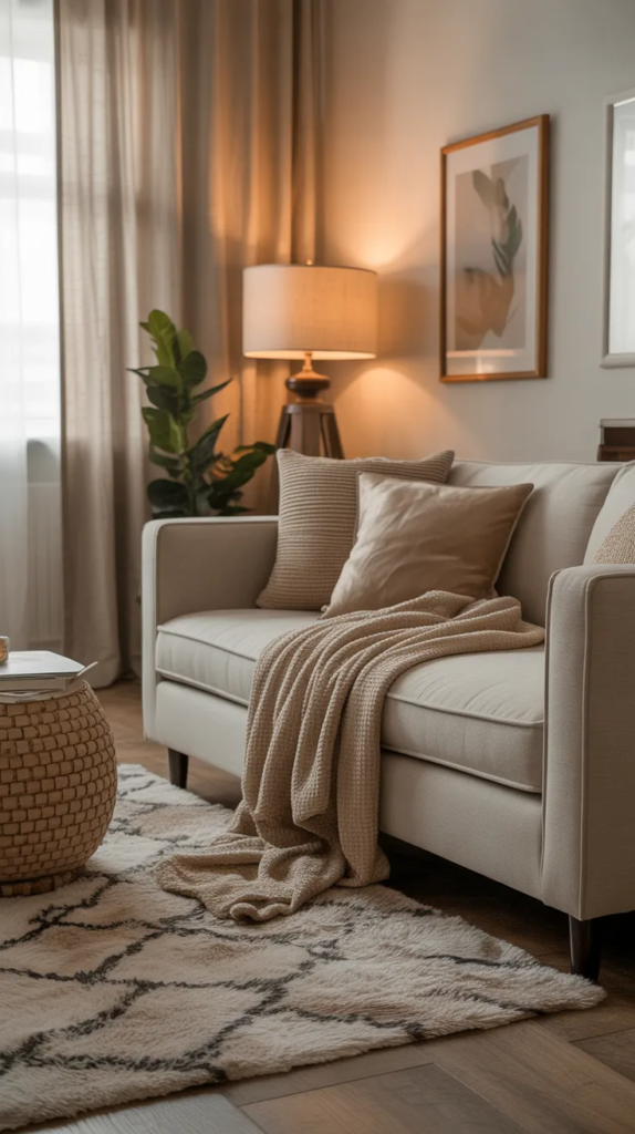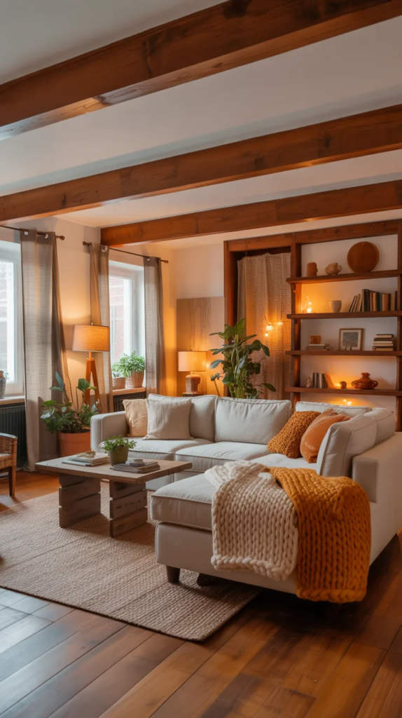 This idea is trending because it blends elegance with coziness. Layered textures—like rugs, cushions, and curtains—add richness without overpowering the design. It’s perfect for those who want a home that feels both stylish and deeply comforting, like a warm hug at the end of a long day.