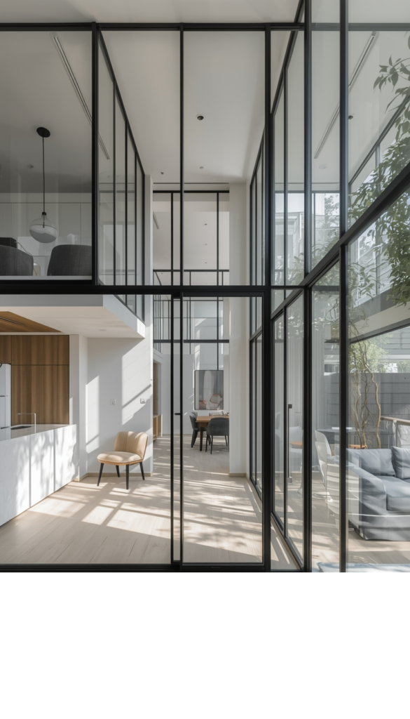 This idea is trending because it balances privacy with openness. The sleek frames add a modern touch, while the transparency keeps the space visually light. It’s perfect for separating living and working areas without losing that airy, spacious feeling that modern homes crave.