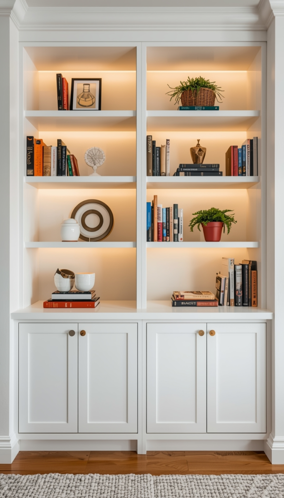 Built-in shelves are a smart way to add storage while enhancing the design. They keep everything organized while also acting as decorative elements.