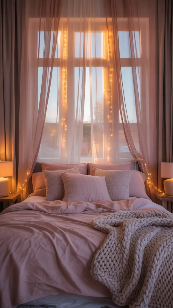 This trend is especially popular because it blends aesthetic beauty with emotional comfort, making the room feel like a safe and calming space. Adding fairy lights, delicate decor, and soft fabrics enhances the overall mood even more. The room feels warm, peaceful, and visually soothing. It’s like living inside a soft, quiet dream.