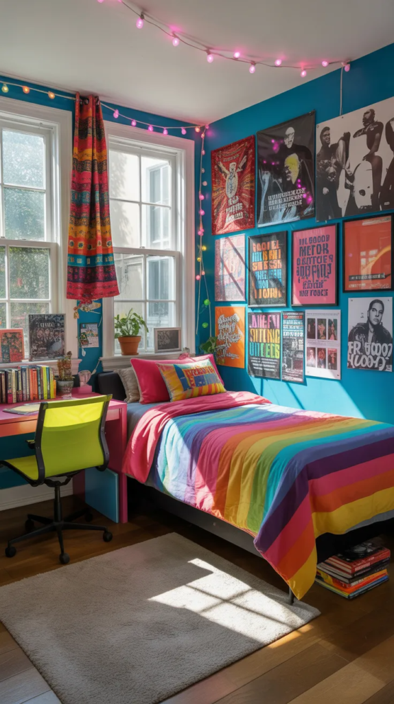 This trend is popular among creative students who want their environment to inspire ideas. The space feels vibrant, energetic, and full of life. It encourages creativity and self-expression. A place where your imagination never stops.