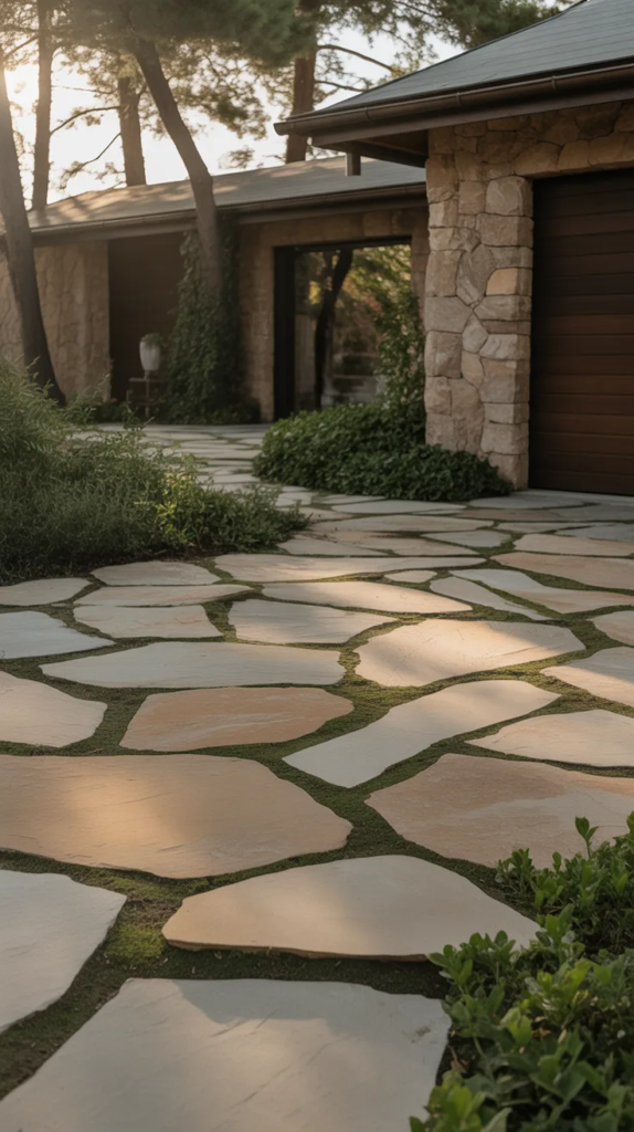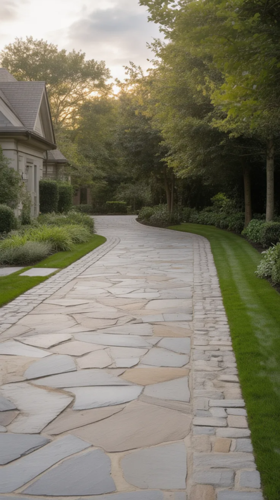 This trend is loved for its authenticity and charm. Each stone is unique, making the driveway feel one-of-a-kind. The overall vibe is warm, grounded, and deeply connected to the outdoors.