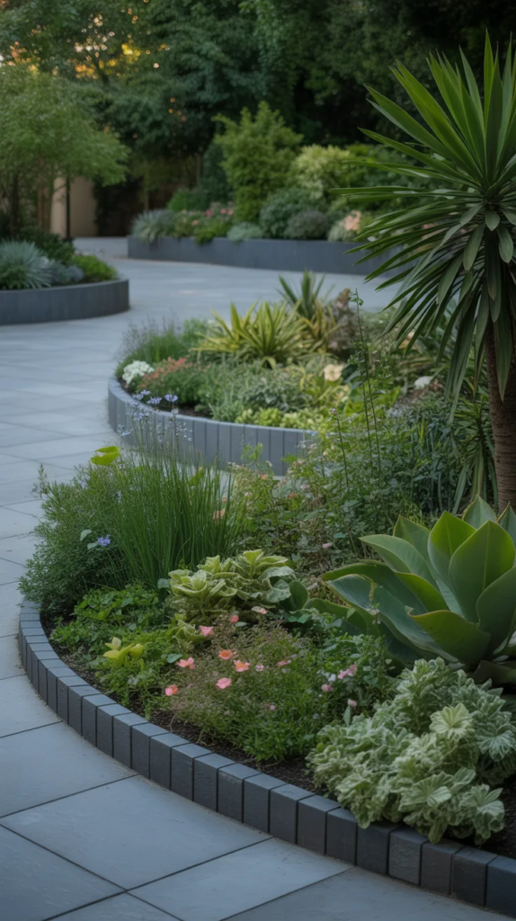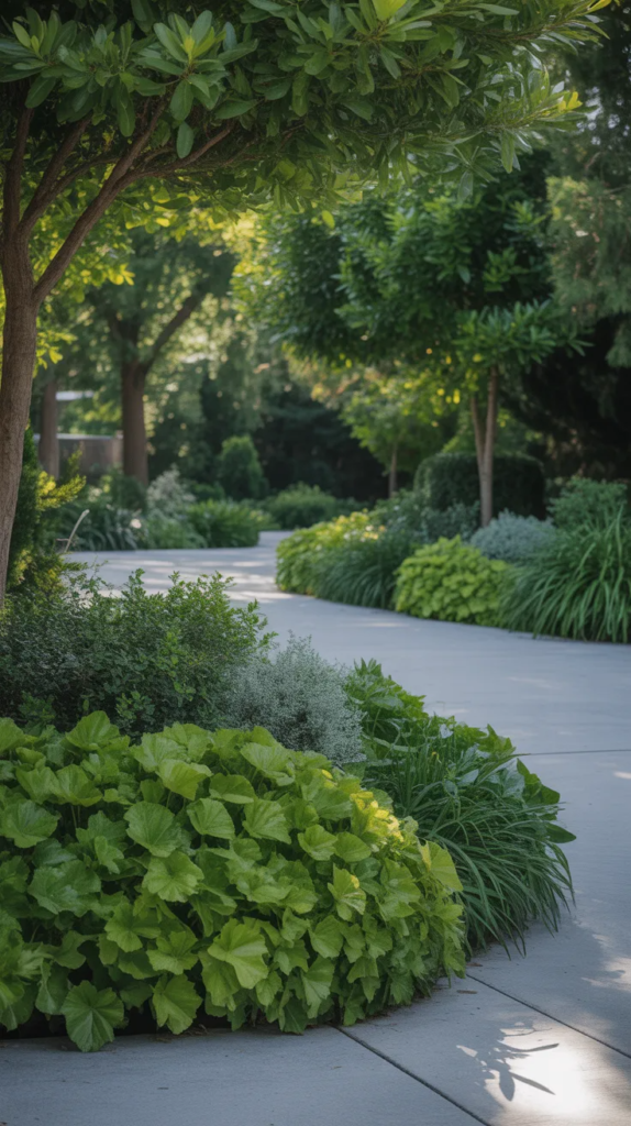 Raised planters bring structure and depth to your driveway, making the entire space feel more designed and intentional. By slightly elevating greenery, you create layers that add visual interest without overcrowding the area. The clean edges of concrete or stone planters pair beautifully with soft plants, creating a perfect balance between modern and natural.
