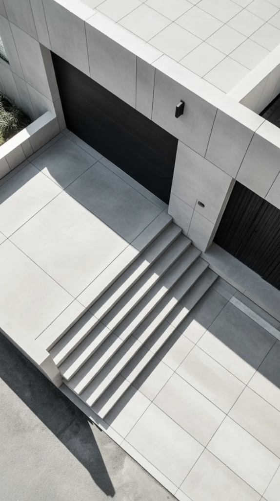 A minimalist driveway focuses on simplicity and clean design. Smooth concrete, straight lines, and a limited color palette create a calm and uncluttered look.
