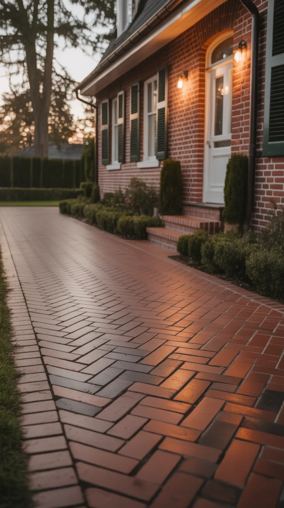 This idea is trending again as homeowners look for ways to add personality and texture. The natural variation in brick colors creates visual interest, making the driveway feel unique and inviting.