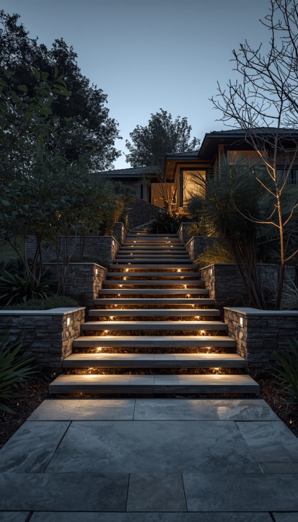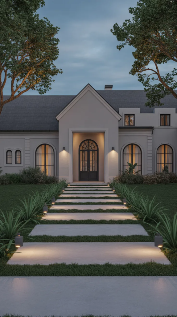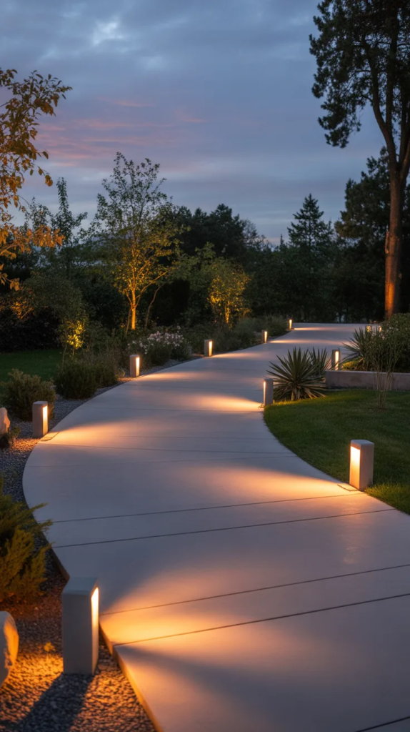 This idea is trending because it blends functionality with luxury. Modern LED options are energy-efficient and stylish, making them a favorite for homeowners. Whether you prefer subtle ground lights or statement fixtures, the result is a driveway that feels magical, calm, and effortlessly welcoming every night.
