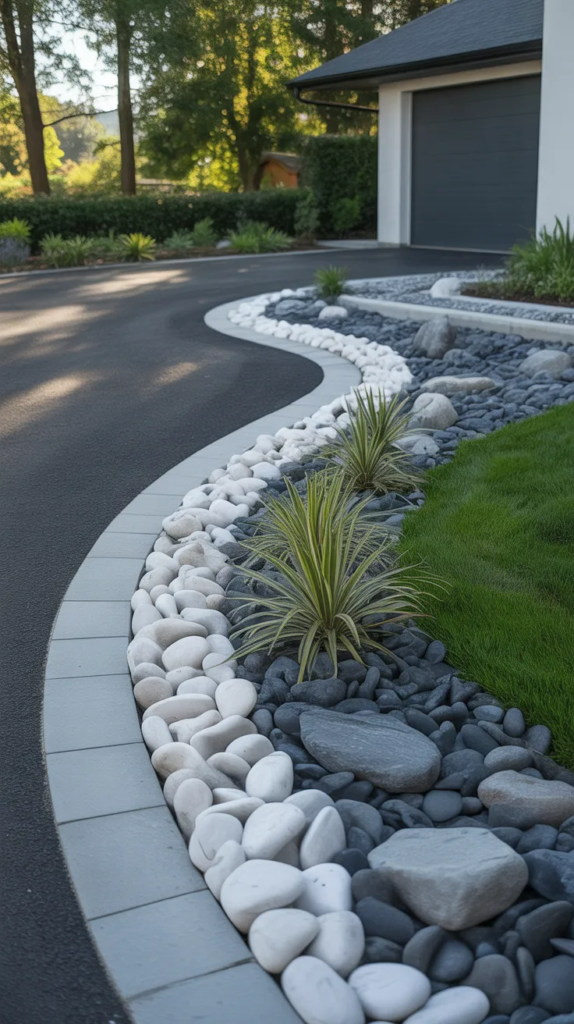 Decorative rocks are a simple yet impactful way to enhance your driveway. They add texture, contrast, and a modern touch without requiring much maintenance.