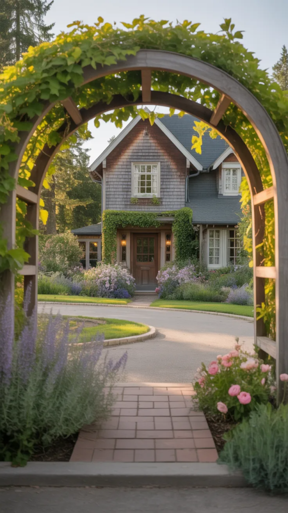 A vine-covered arch at the start of your driveway creates a magical, storybook entrance. It frames the space beautifully and adds vertical interest that draws the eye.