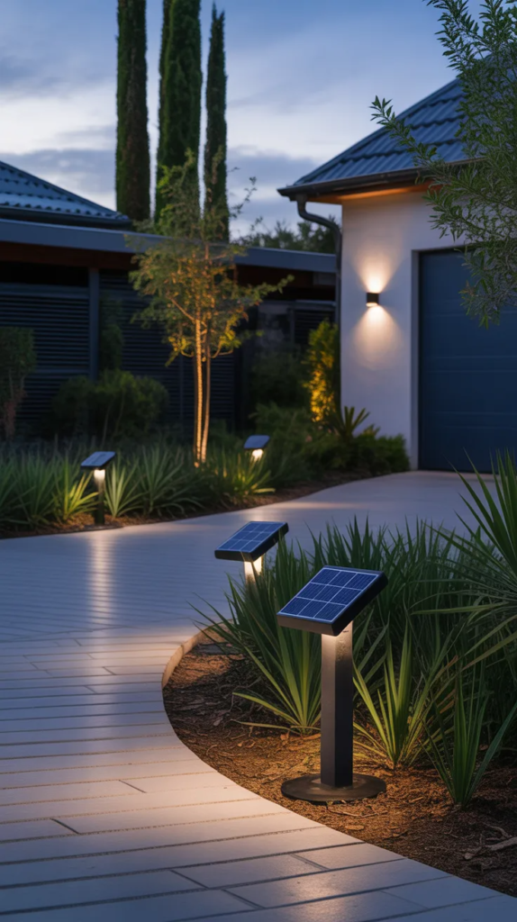 Solar lights are a smart and stylish way to light up your driveway without increasing energy costs. They charge during the day and glow beautifully at night.
