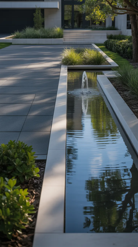 Adding a water feature near your driveway brings a sense of calm and luxury. The sound of flowing water creates a relaxing atmosphere.