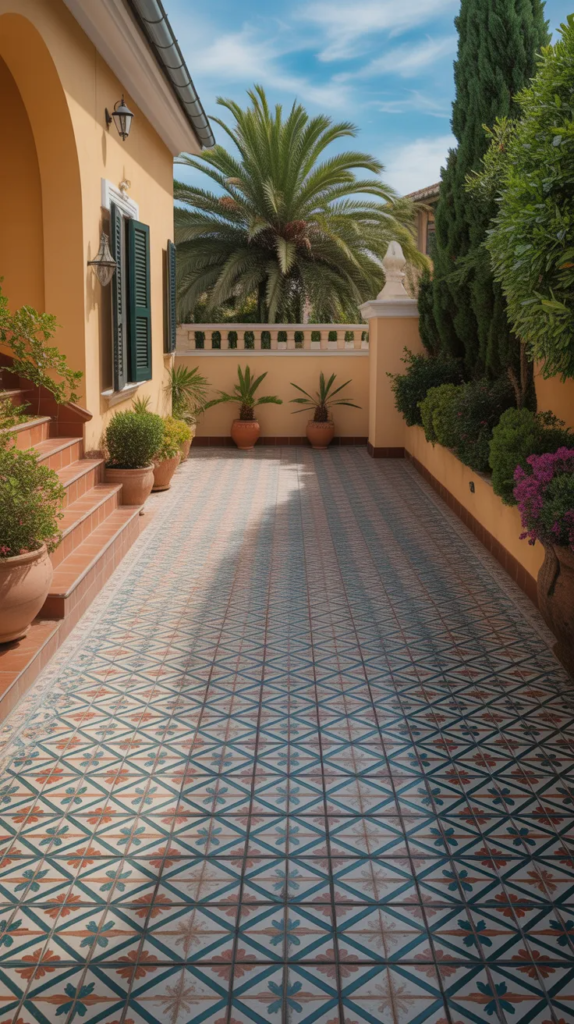 A tiled driveway adds personality and creativity to your front yard. Patterns and colors make the space stand out instantly.