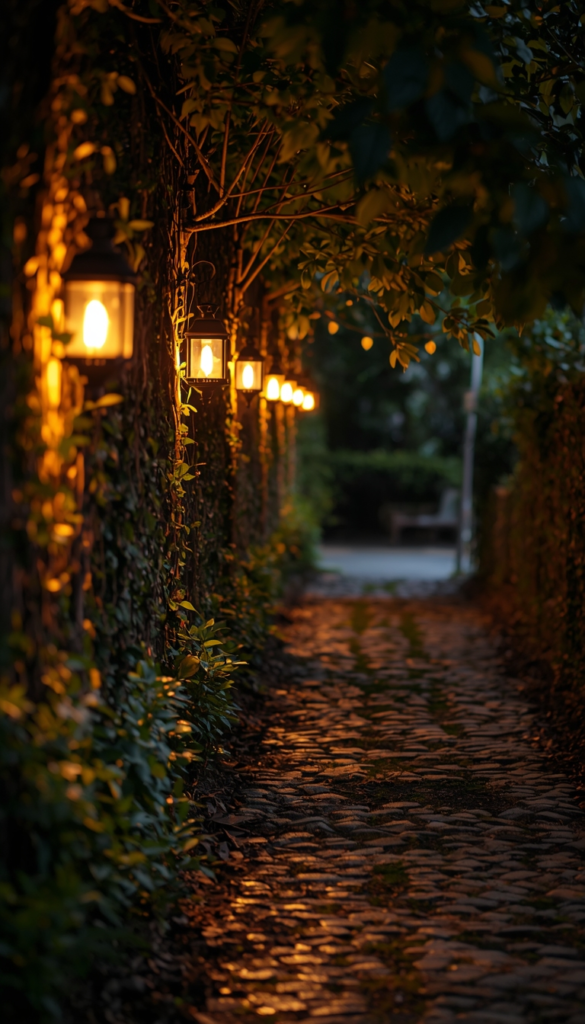 Lantern lighting adds a timeless charm that feels warm and inviting. Whether mounted on posts or placed along the ground, lanterns create a soft glow that transforms your driveway at night.