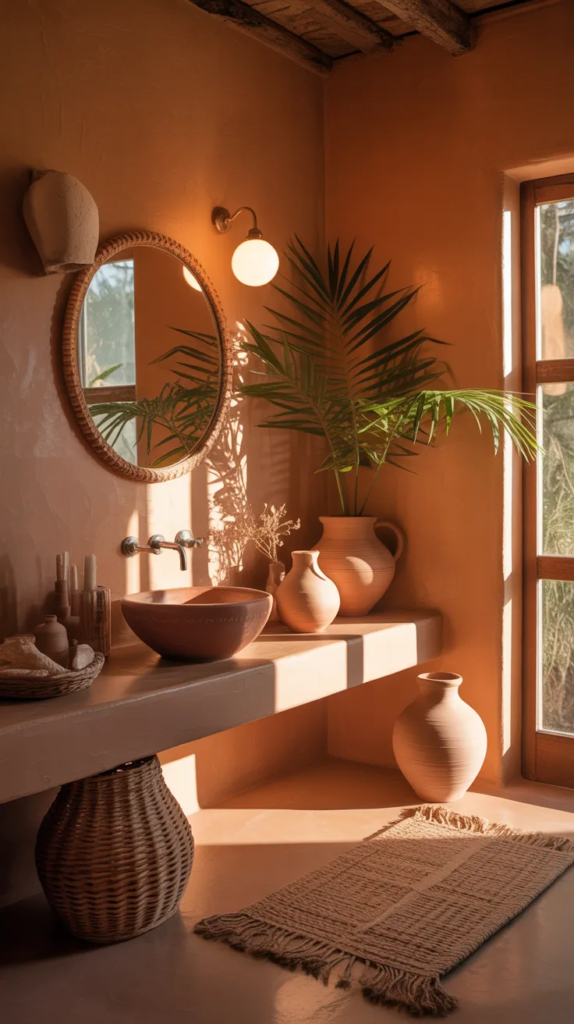 Clay and terracotta tones add warmth and depth that instantly make a bathroom feel cozy and inviting. These rich, earthy hues create a grounded atmosphere that feels both rustic and luxurious. Paired with natural textures, the space feels like a serene escape inspired by nature.