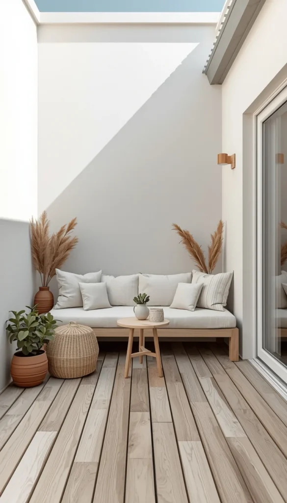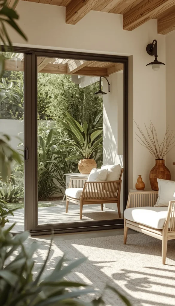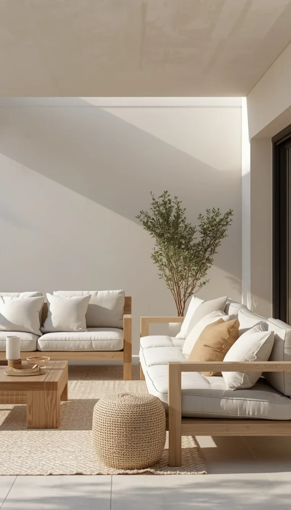 Keep the color palette light with whites, beiges, and soft wood tones. Use low seating and minimal decor to avoid clutter. The simplicity creates a peaceful, breathable space that feels both modern and timeless—like a quiet retreat just outside your door.