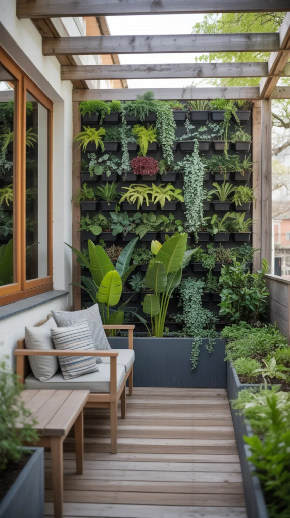 A vertical garden is a beautiful way to add greenery without taking up floor space. This idea is trending because it brings life and freshness to patios, especially in smaller areas. The layered greenery creates a rich, textured backdrop that feels luxurious.