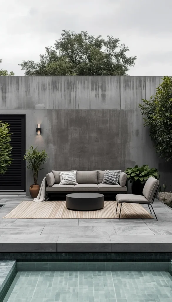 Pair the concrete base with soft textures like cushions or rugs to add warmth. Keep decor simple and intentional. The space feels sleek, calm, and effortlessly stylish.