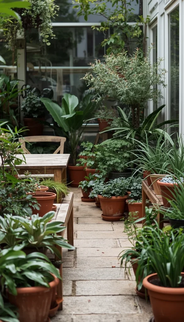 Mix different pot styles and plant types to create depth. Keep the arrangement balanced and natural. The result feels vibrant, calming, and full of life—like your own little garden escape.