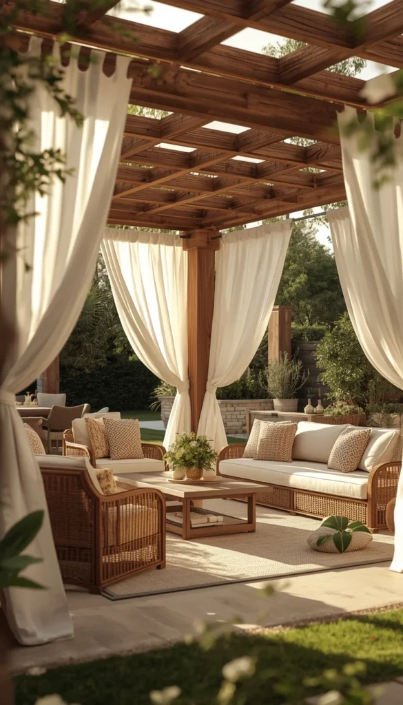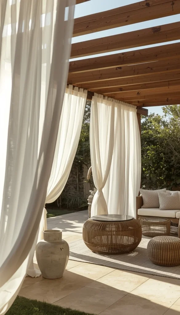 Choose light, airy fabrics like white or cream to keep the space bright. Let the curtains flow naturally for a relaxed look. This simple addition transforms your patio into a peaceful, intimate retreat you’ll love spending time in.