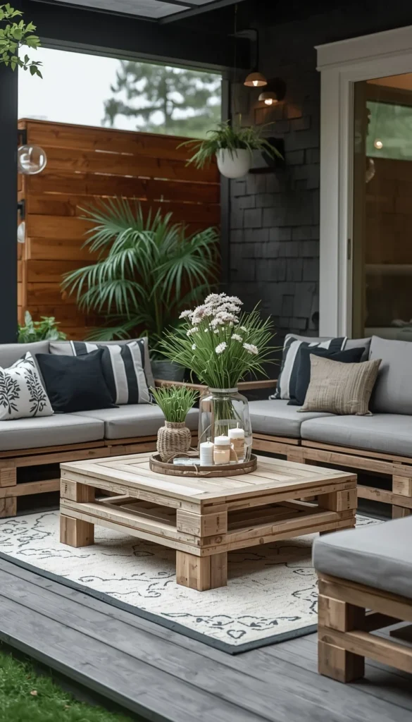 Pallet furniture is a budget-friendly favorite that never goes out of style. With just a few wooden pallets and some cushions, you can create a comfortable seating area that looks both casual and trendy.