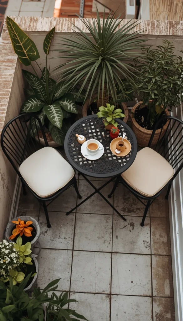 A small bistro set can turn even the tiniest patio into a charming and functional space. This idea is perfect for those who want a cozy corner for coffee or quiet moments.